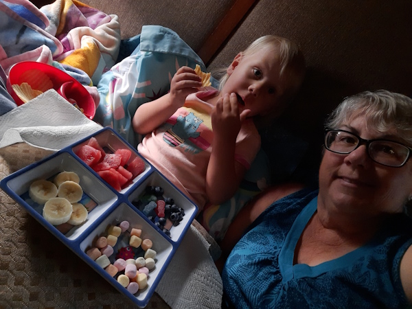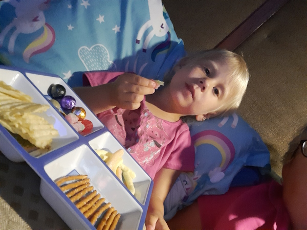 Tonight is the real sleepover for Natasha. Junk food, a movie, glow sticks, stories and lot's of laughs.