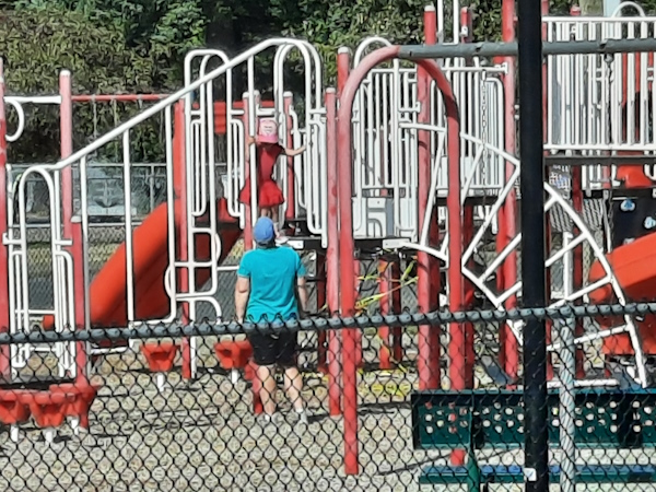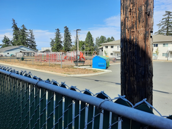 I am in the back of the backyard looking towards the playground. This is how close we are to the playground.