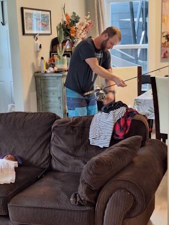 The weather is looking like rain, but Jeremy and Gabriel are going fishing anyway.