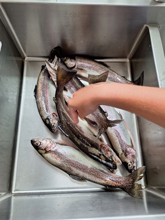 It is a good day today. Gabriel points to one of his fish. The biggest fish, he says.
