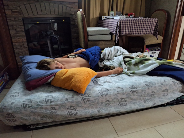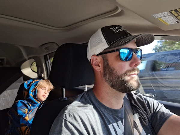 On our way back, Gabriel could not stay awake. Getting up early is not his thing.
