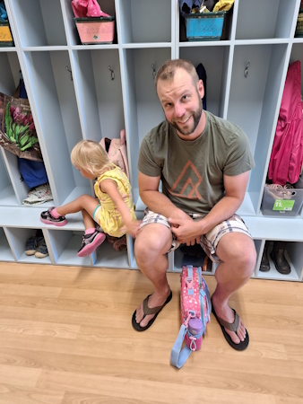 Jeremy is not working today. We are dropping off Natasha at daycare.