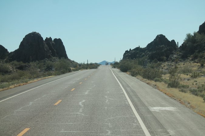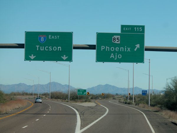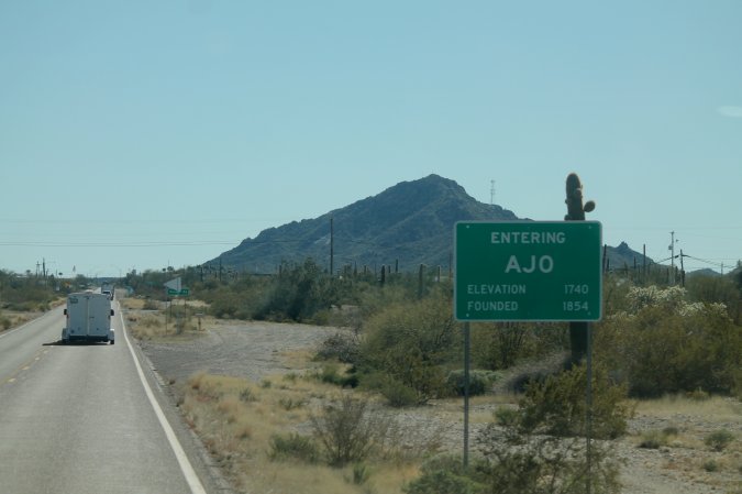 After one hour and thirty minutes, we arrive at Gila Bend and leave behind the I-8 to take State Route 85 south towards Ajo.