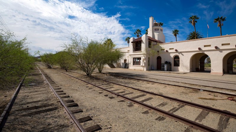The Plaza is viewed from the train depot. The depot was built in 1916.