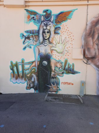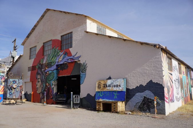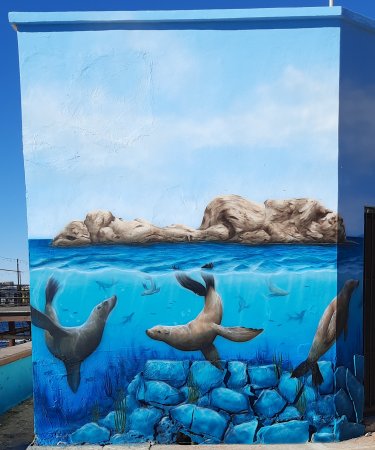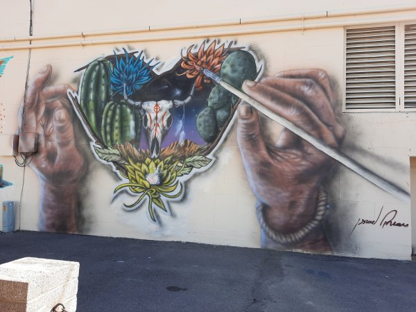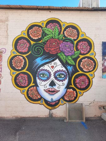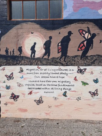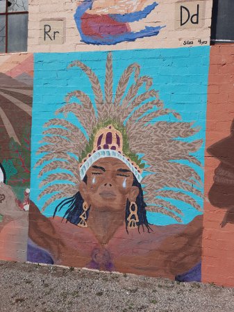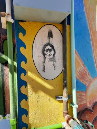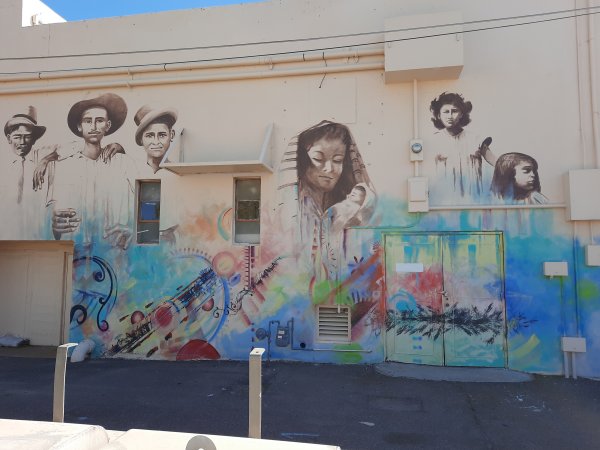 The murals looking from the park celebrate the Mexican Town and the Indian Village.