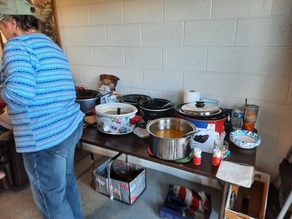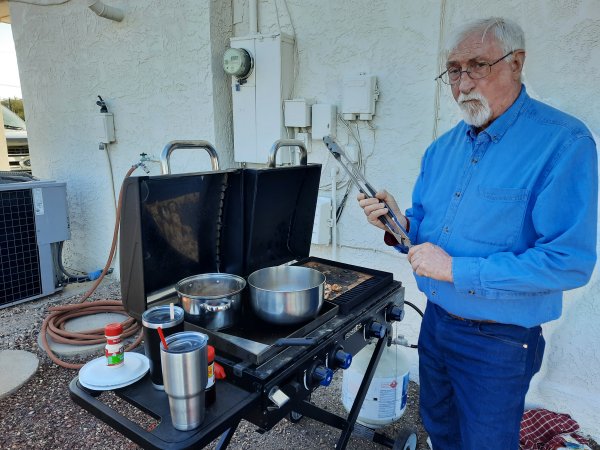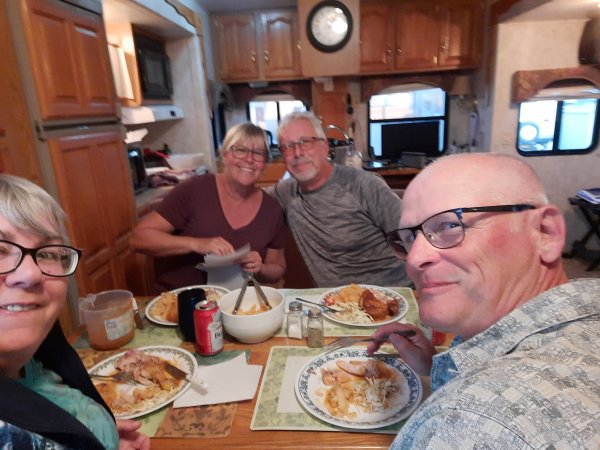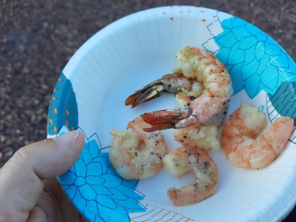 The RV Park supplies the shrimp. The campers bring the side dish. What a feast it was.