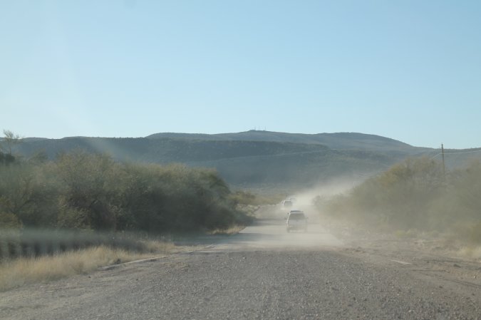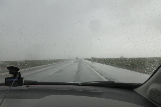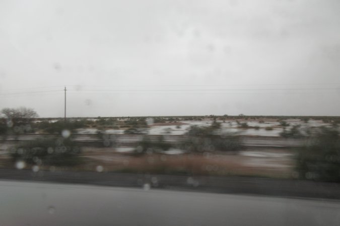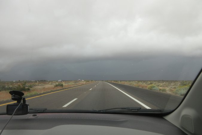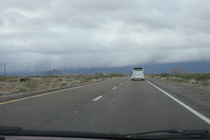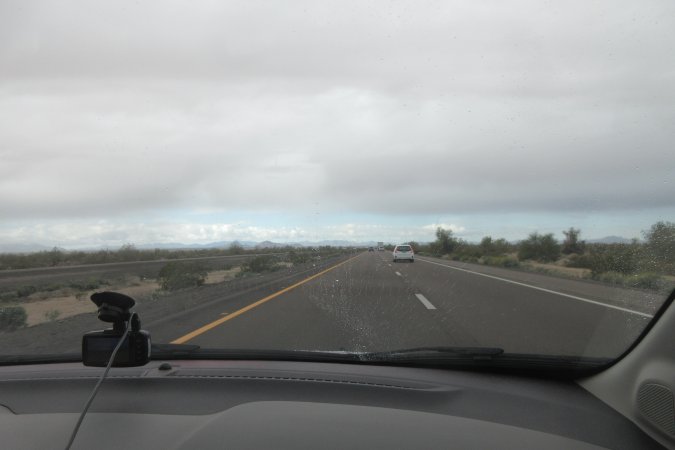 But halfway between Gila Bend and Yuma, the rain caught up to us.