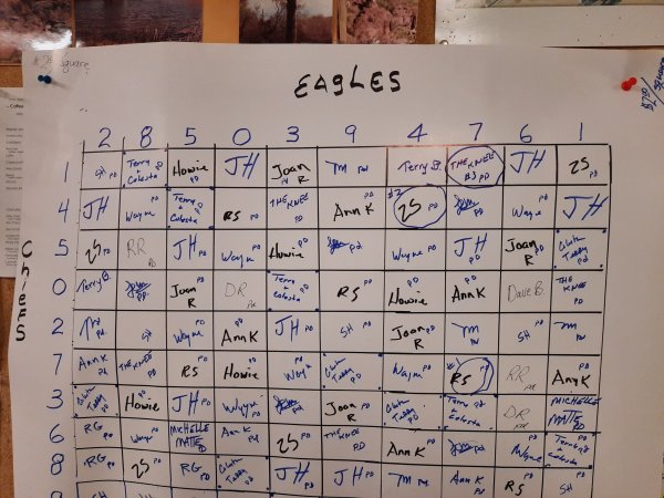 I won $50 from the big board. Jannie won $50 from the second pool.