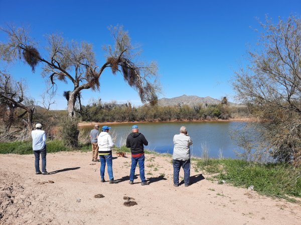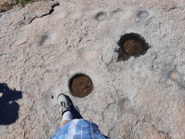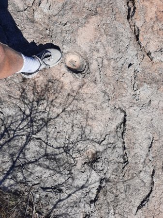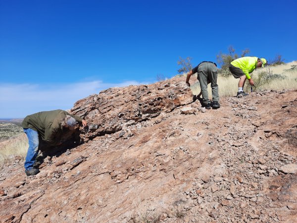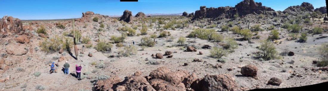We have a few rock hounds in our group. They are looking for geodes. Behind me is the small mountain with the possible geodes.