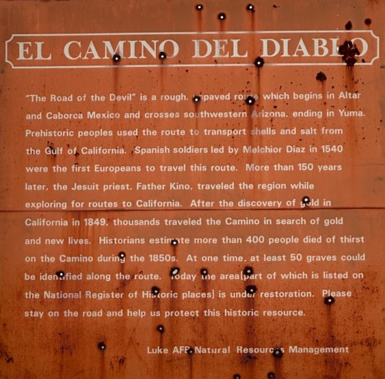 The larger part of the El Camino Del Diablo is a gravel road. It was