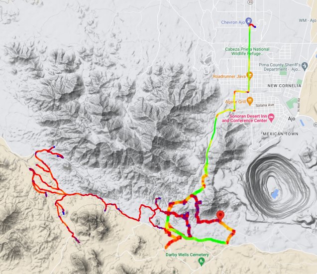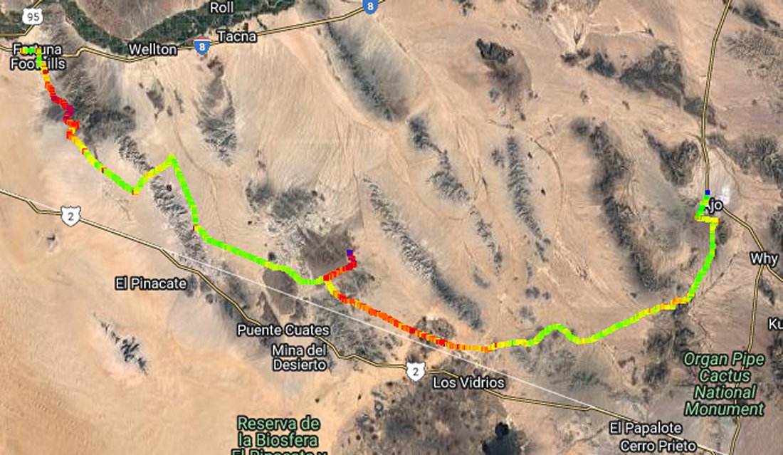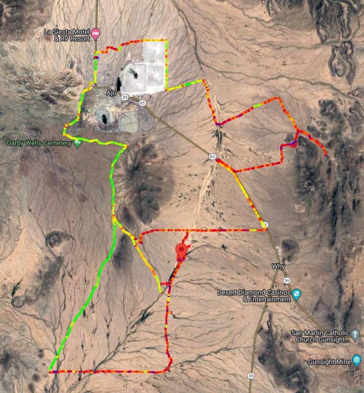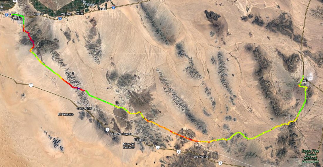 We lost a lot of elevation today. On the left is Ajo. On the right is Yuma's elevation.