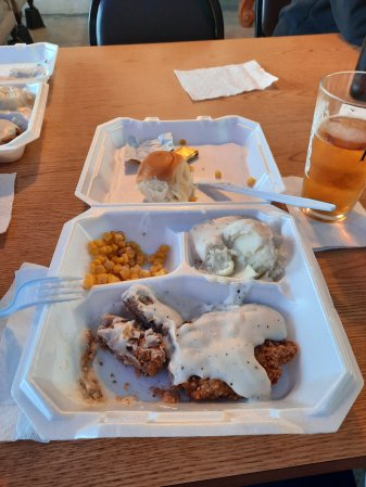 What is that? Chicken Fried Steak with mashed potatoes and corn.
