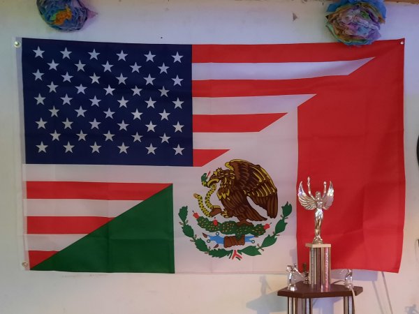 We often see a flag half USA and half Canada. We had never seen a flag half USA and half Mexico.