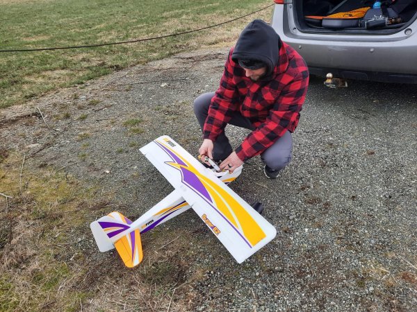 From Comox, Jeremy made the first flight of his new RC airplane.