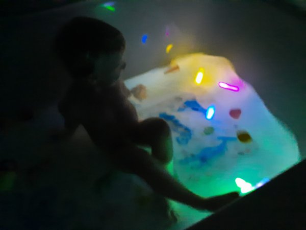 She even gets to play, in the dark, with glowsticks, in her bathtub. Life is good!