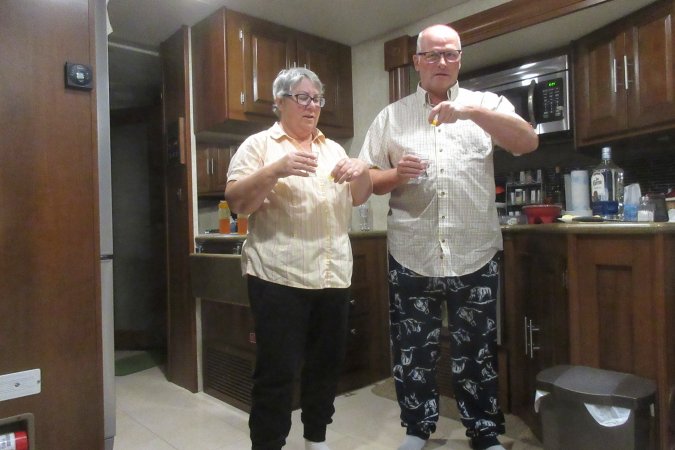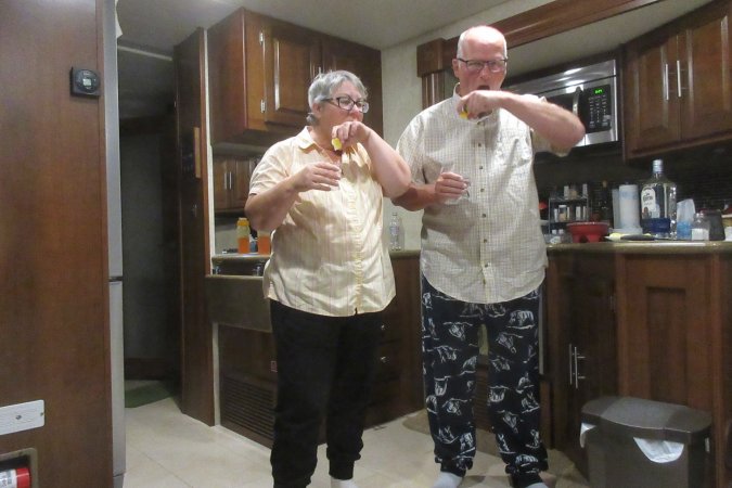 We had a few drinks at Jannie and Jan's place. Michele cut Jan's hair too.