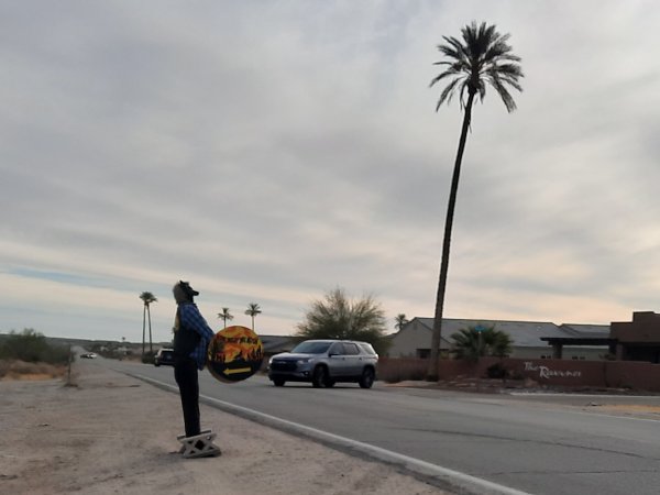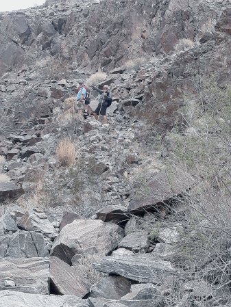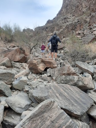 We are hiking the Fortuna Wash to Box Canyons and Petroglyphs trail.