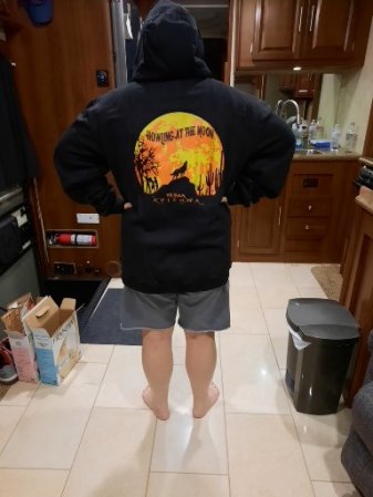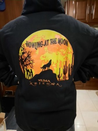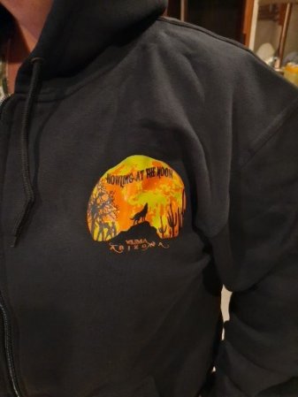 Michele and Jannie each bought a hoody with "Howling At The Moon" on it.