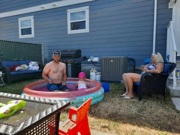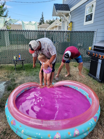 Natasha is helping me empty the pool. She likes to jump in the puddles.