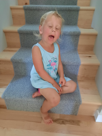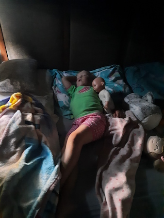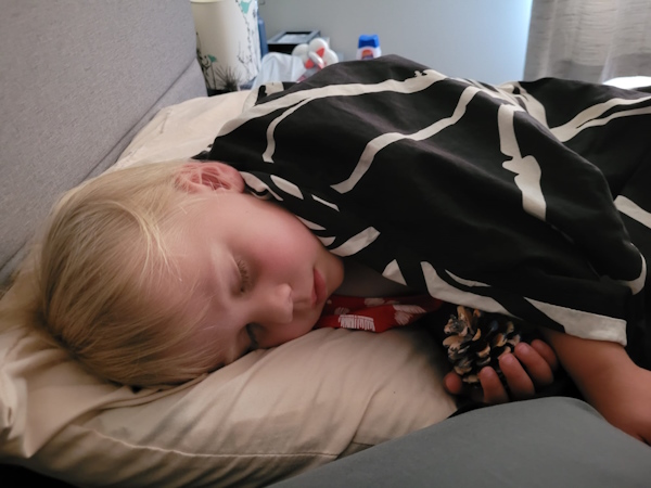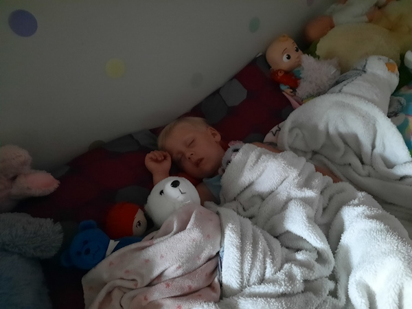 Natasha woke up at 7 h 45. This is very late for her and good for us!