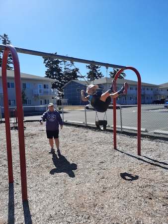 I spend at least an hour at the playground with Natasha. She looks sad, but we actually had a lot of fun.