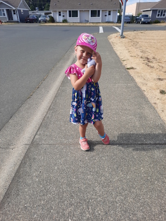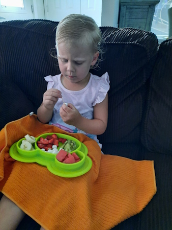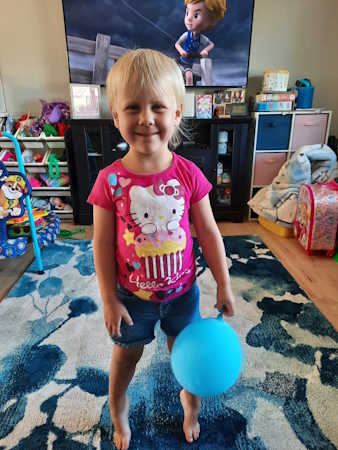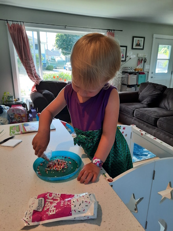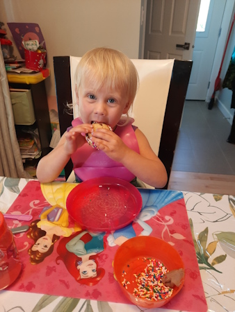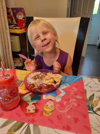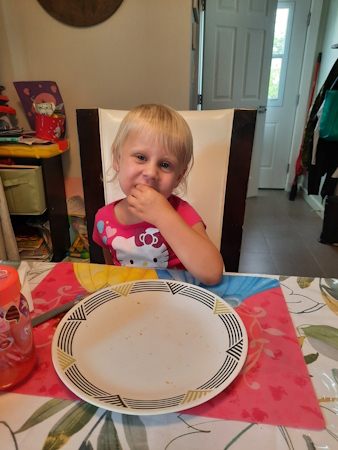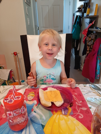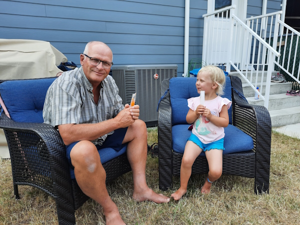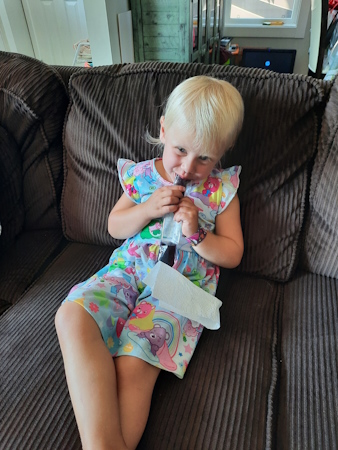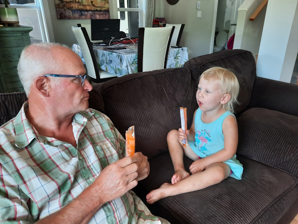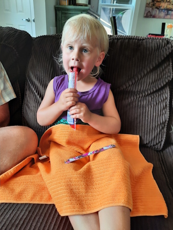 It is still hot today, and after daycare, Natasha has another Mr. Freeze to cool off.