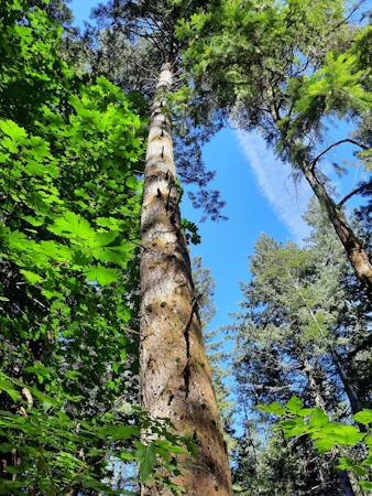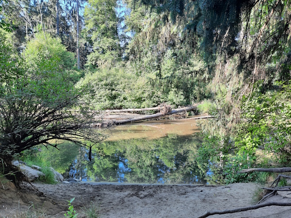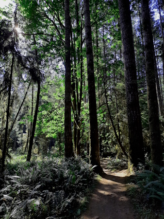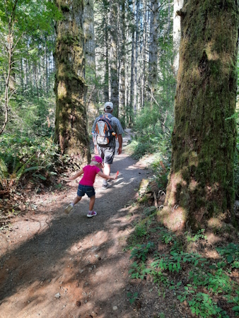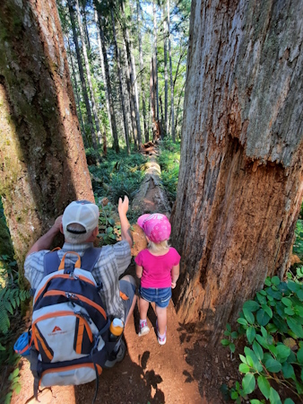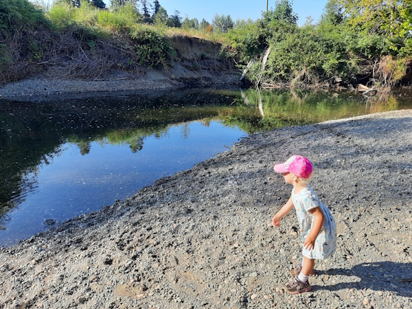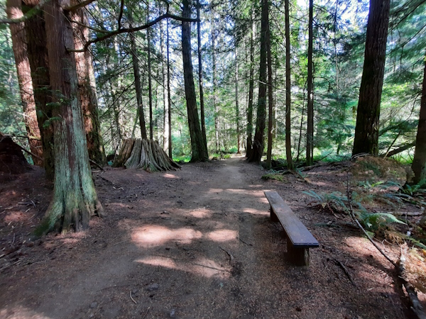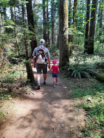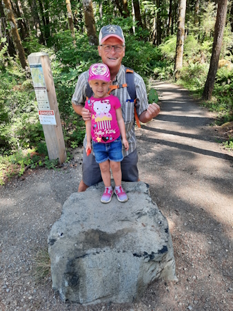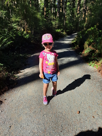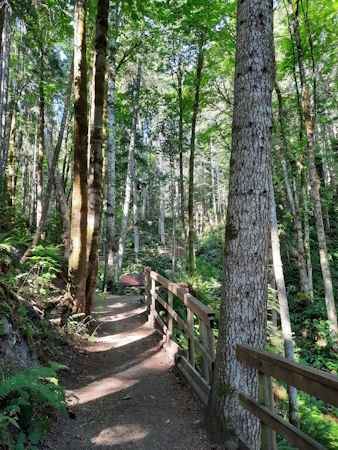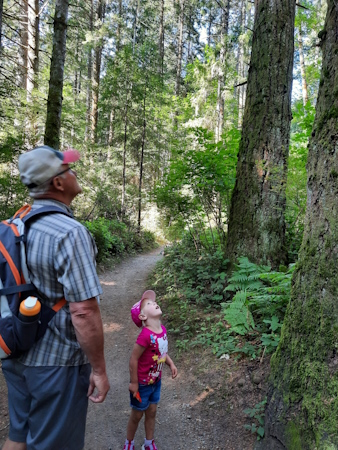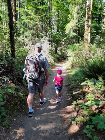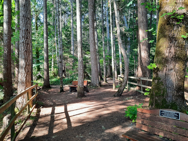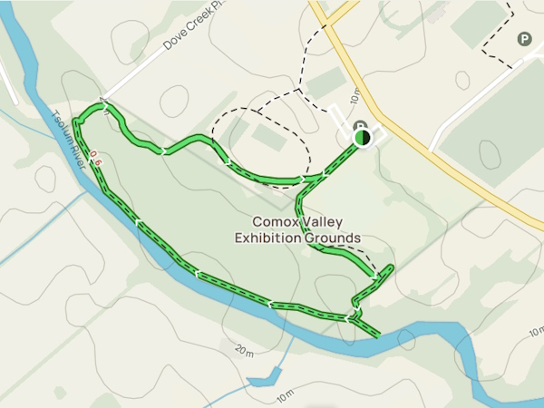 I am out with Natasha this morning. We are hiking the Tsolum River Exhibition Loop. This trail is a loop about 2.1 km long and it is flat.
