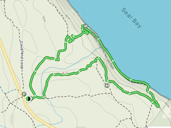 I decided to do the Seal Flipper and Coupland Loop. This trail is 2.6 km long. It has some steep areas near the beach.