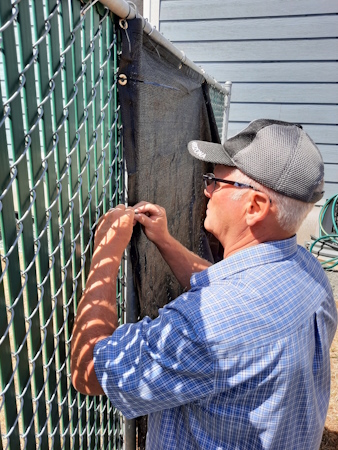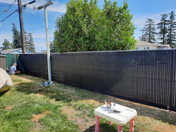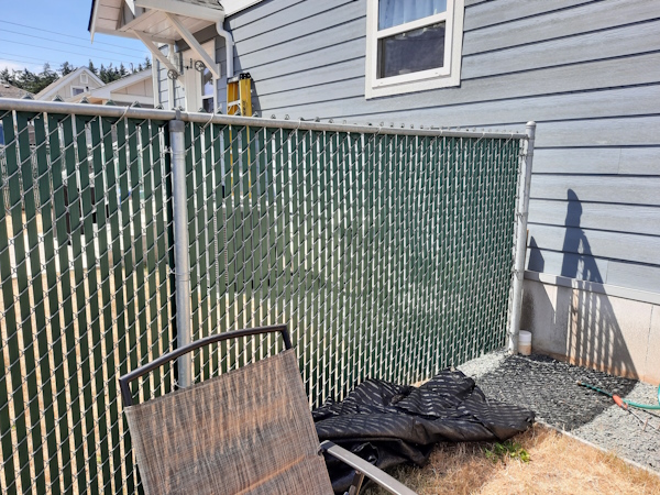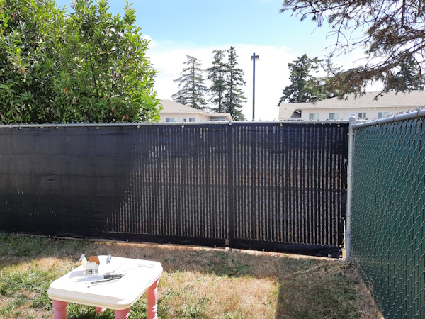 The BBQ is close to the fence. When the wind blows, the BBQ has a hard time staying hot.