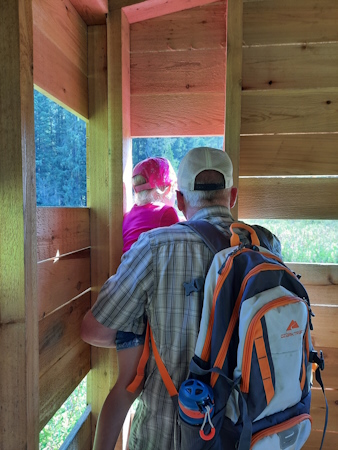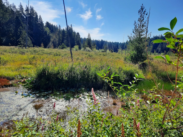 I explain to her where we are going. We are hiking Melda's Marsh Loop again.