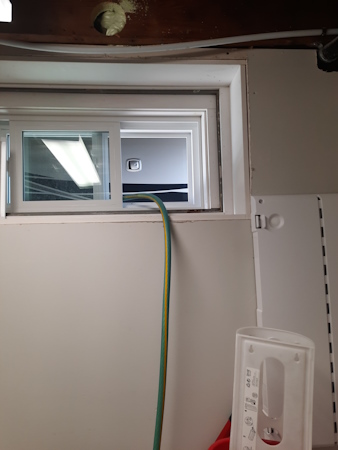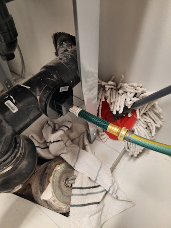 I connect the other end of the garden hose to a modified cap and place the cap on the sewer pipe in the house.