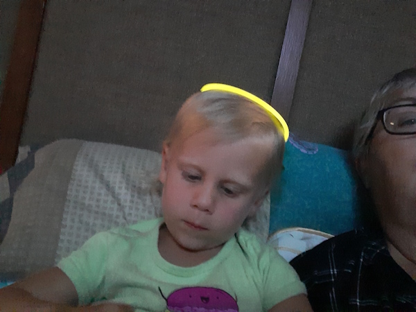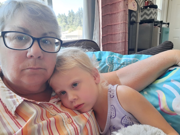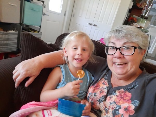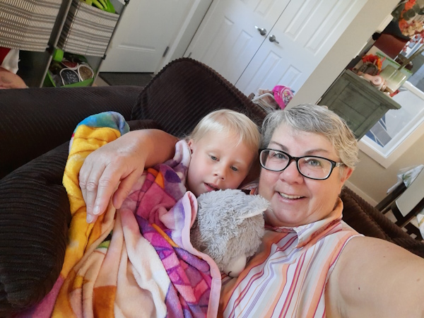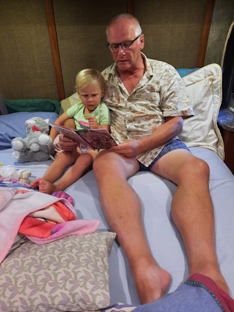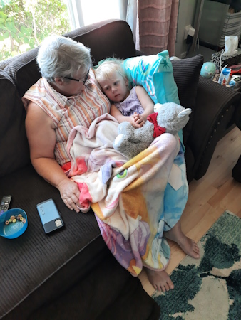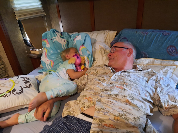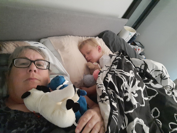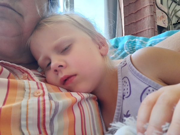 After the stories, we fake sleeping. Call grand-maman. Natasha is a pretty good actress.
