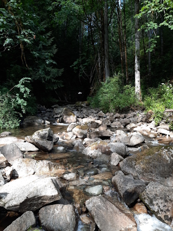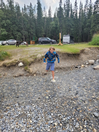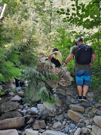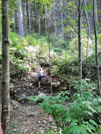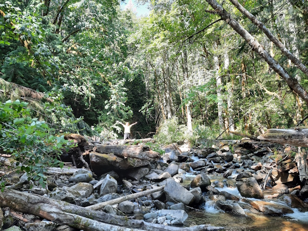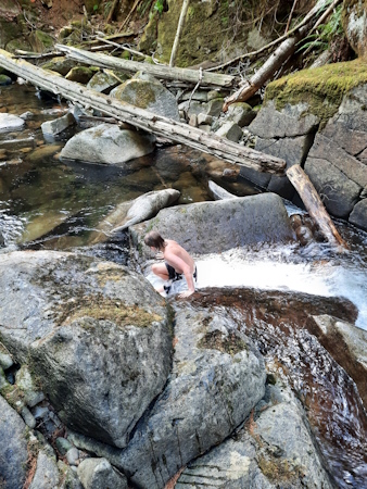 On our way back to the car, Gabriel walked on the bottom of the creek.