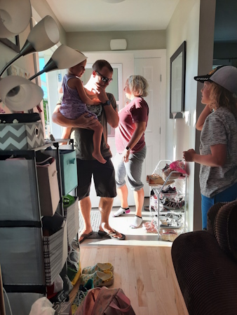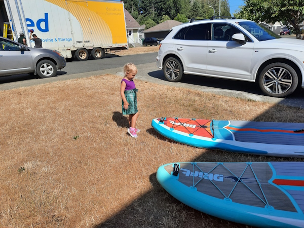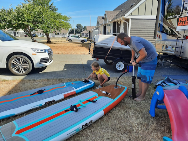 Jeremy and Gabriel are going to the beach to do some paddle boarding. Natasha is making sure all is good.