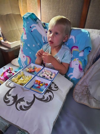 Natasha had a good night's sleep in the MH. She is having a morning full of laughter.