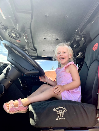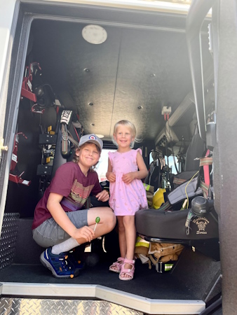 He saw Gabriela and Natasha and asked them if they wanted to go in the fire truck for a tour. They loved it!