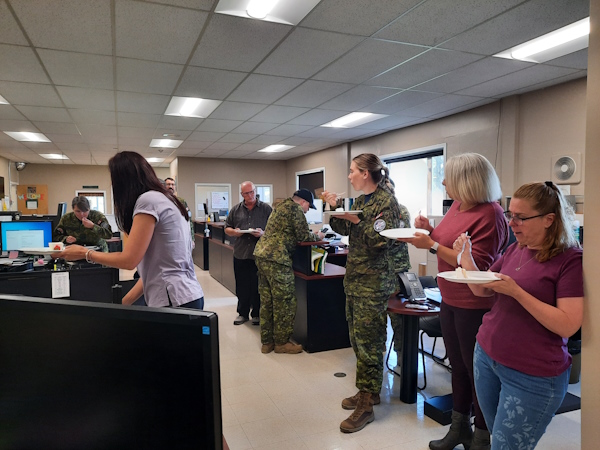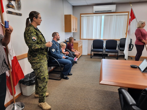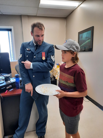 recruiting office, but her boss, the deputy Wing Commander, suggested doing it here with her coworkers.