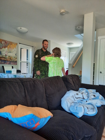 Once back home from the ceremony, Jeremy informed us that CANEX had free hot dogs or hamburgers for lunch.