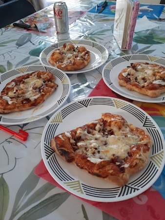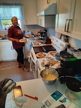 Jeremy and Kristin are trying their new pizza oven they won at the base bingo.