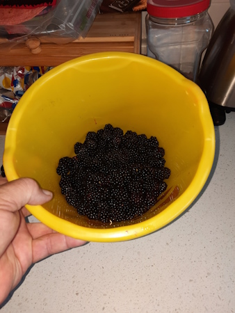 It is blackberry harvest time this evening. Jeremy and Kristin are freezing them for this winter.