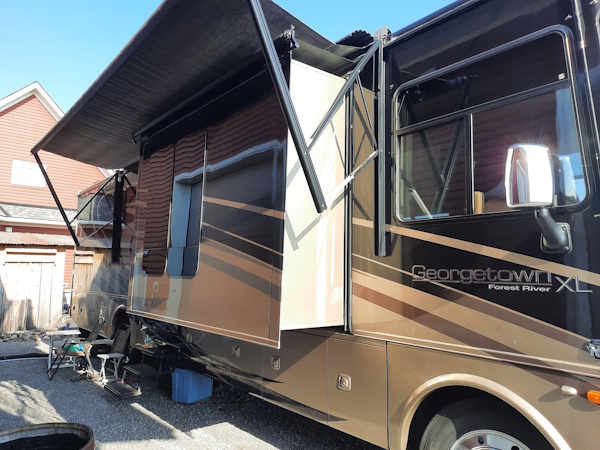 It had to happen. We had a light rain for about 10 minutes, just enough to make the MH and car really dirty.