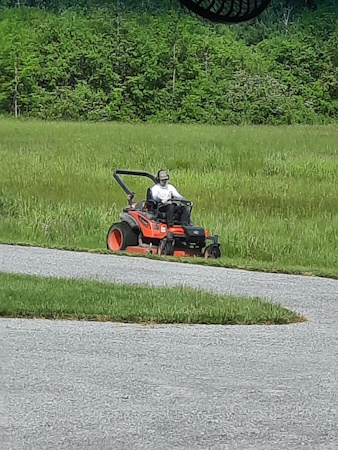 Surprise! I am not cutting the grass at Jannie and Jan's place. This is their employee.
