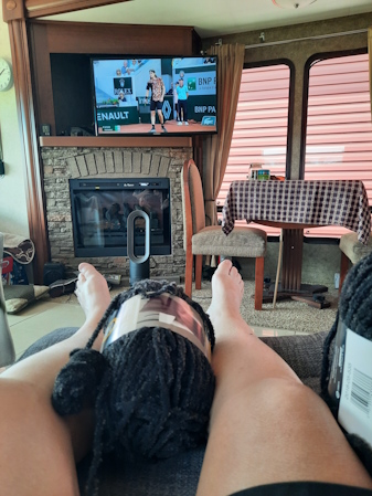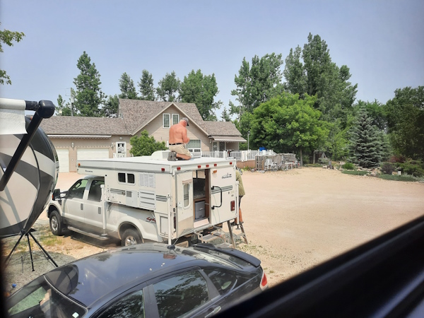 Dennis cannot go up ladders yet, so I helped him install a solar panel on the roof of their new truck camper.