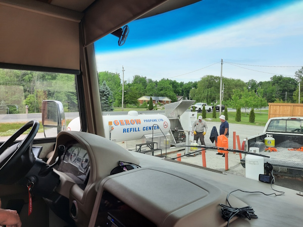 Less than fifteen minutes after we left, we stopped at our first stop, Propane!
