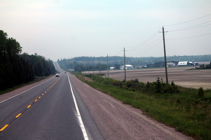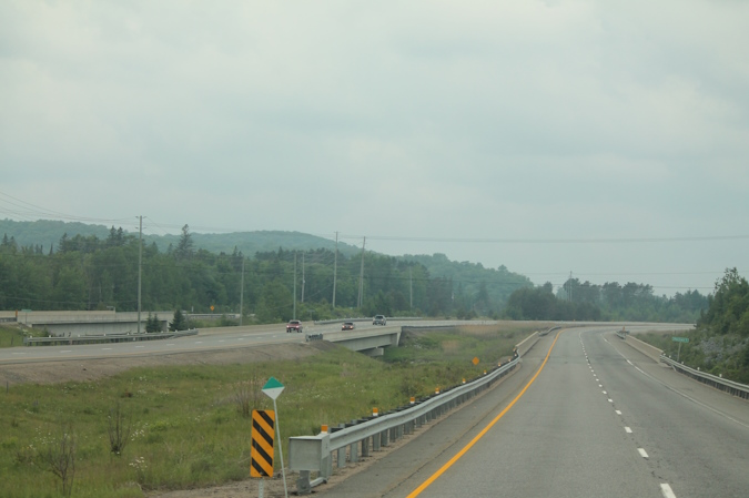 Northern Ontario is a boring drive with lots of trees. From this point on, all the water will flow to the Atlantic Ocean.