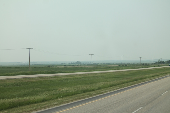 We left the Walmart by 7: 45. We had smoke all the way to Cochrane.