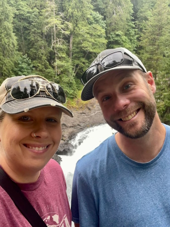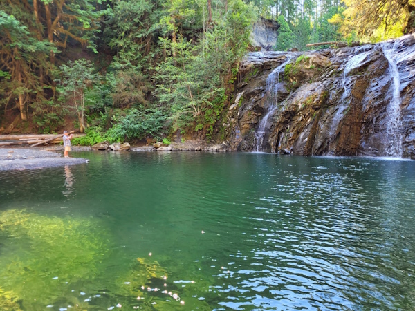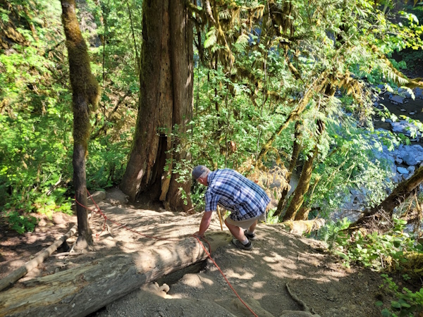 It is quite the drop from the trail to the bottom of the falls. Jeremy.