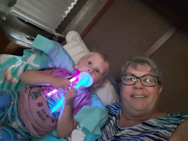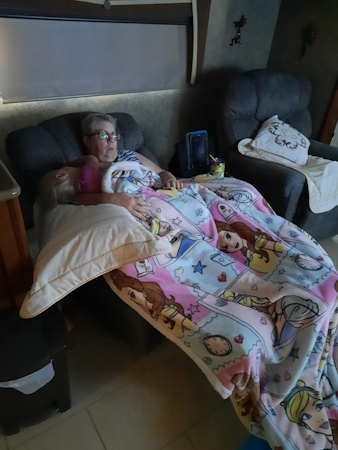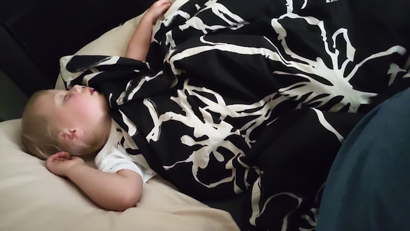 Natasha slept until 8 am. Now from 6 am to 8 am, she was in grand-maman's harm, asleep.