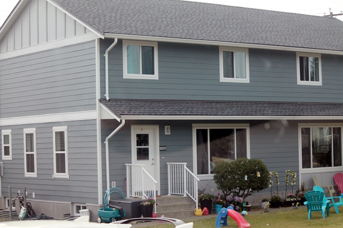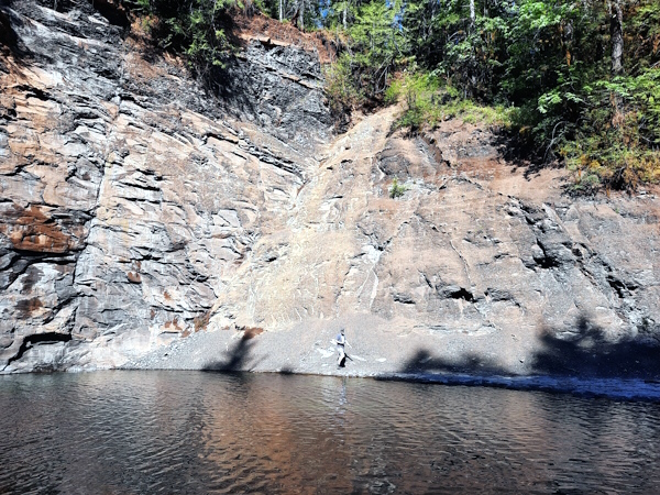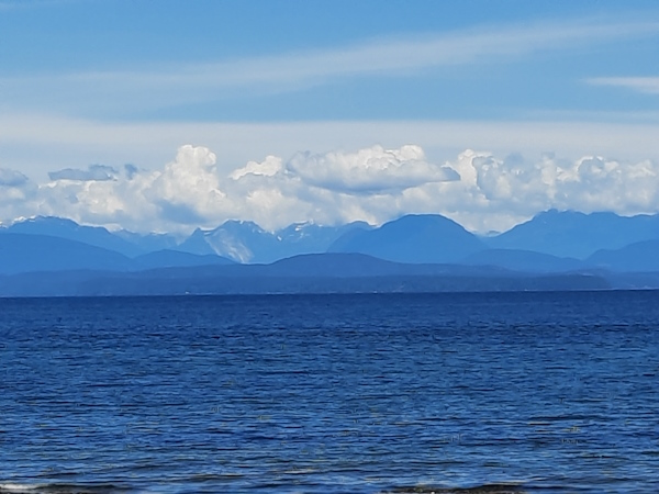 We can see the mainland and the snow in the mountains. The salmons are not back yet.