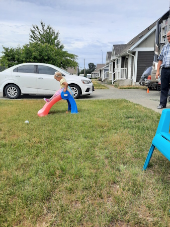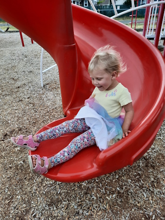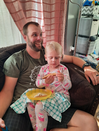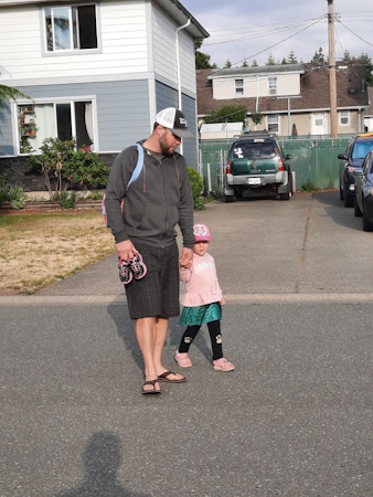 We all went to pick up Natasha at the daycare. She was so happy to see us.